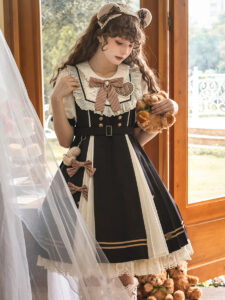 $89.00【Gone with the Wind】 Uncharted Stars Original JSK Camisole Dress Lolita Dress Jacket Fishtail Skirt Spring/Autumn – Velvet, Bow, Lantern Sleeves, Ruffled Hem