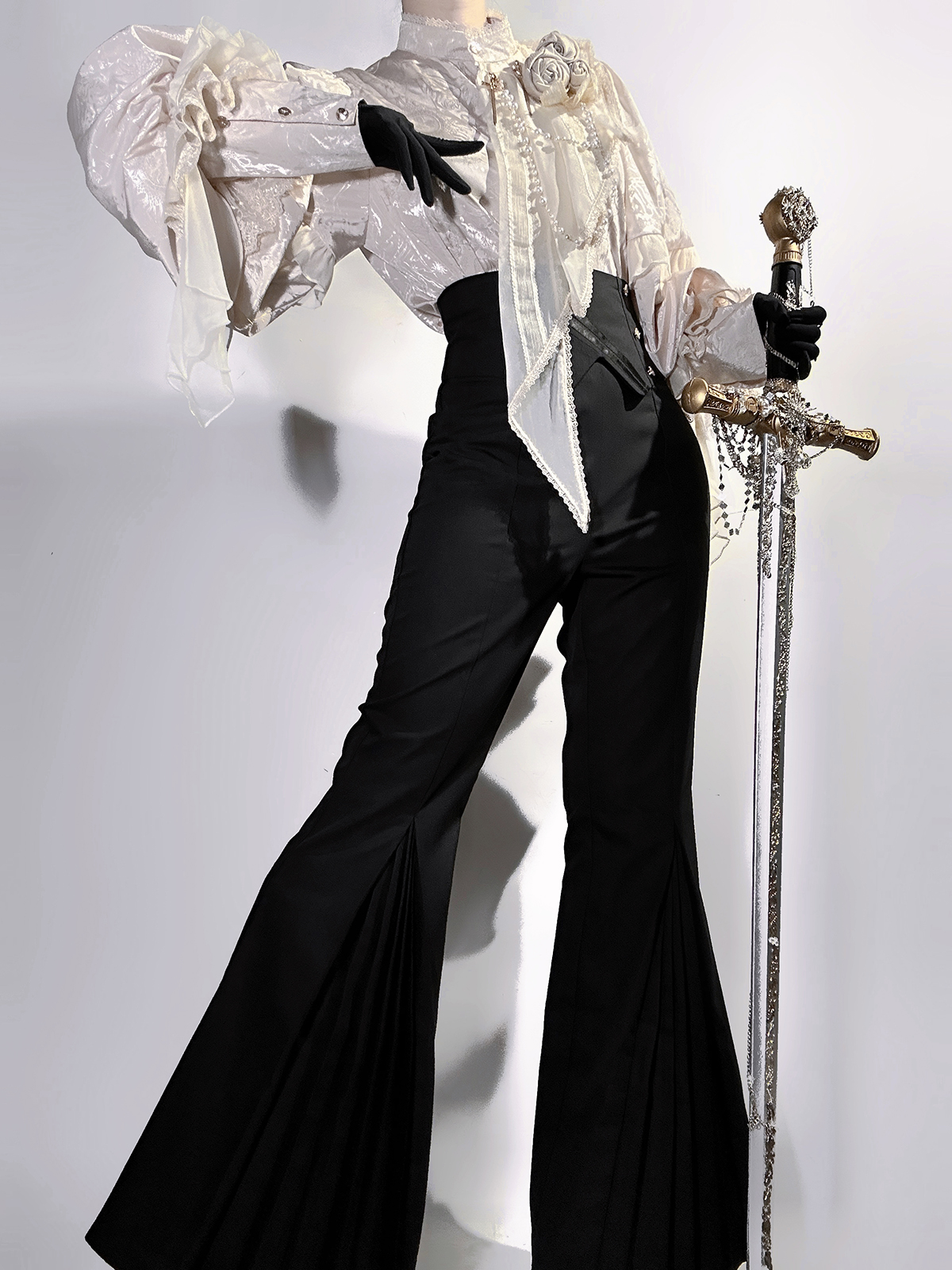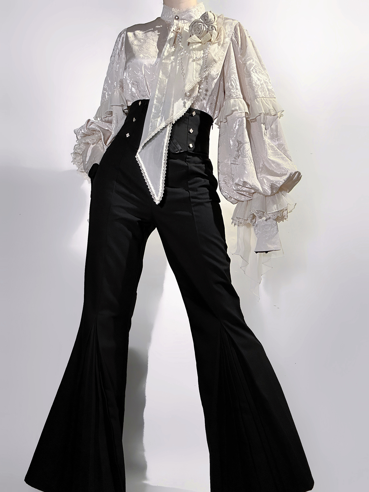 This is a set blending European vintage aristocratic style with new Chinese ascetic aesthetics, falling under the category of “ouji / Chinese-style noble wear.” The overall palette of cream-white jacquard and pure black creates a cool, sophisticated, and ascetic young noble aura. It retains the ornate ceremonial feel of European court menswear while enhancing a clean, elegant temperament through new Chinese minimalist lines and waist belt design. It is a top choice for anime conventions, themed photoshoots, and daily cool and edgy looks.